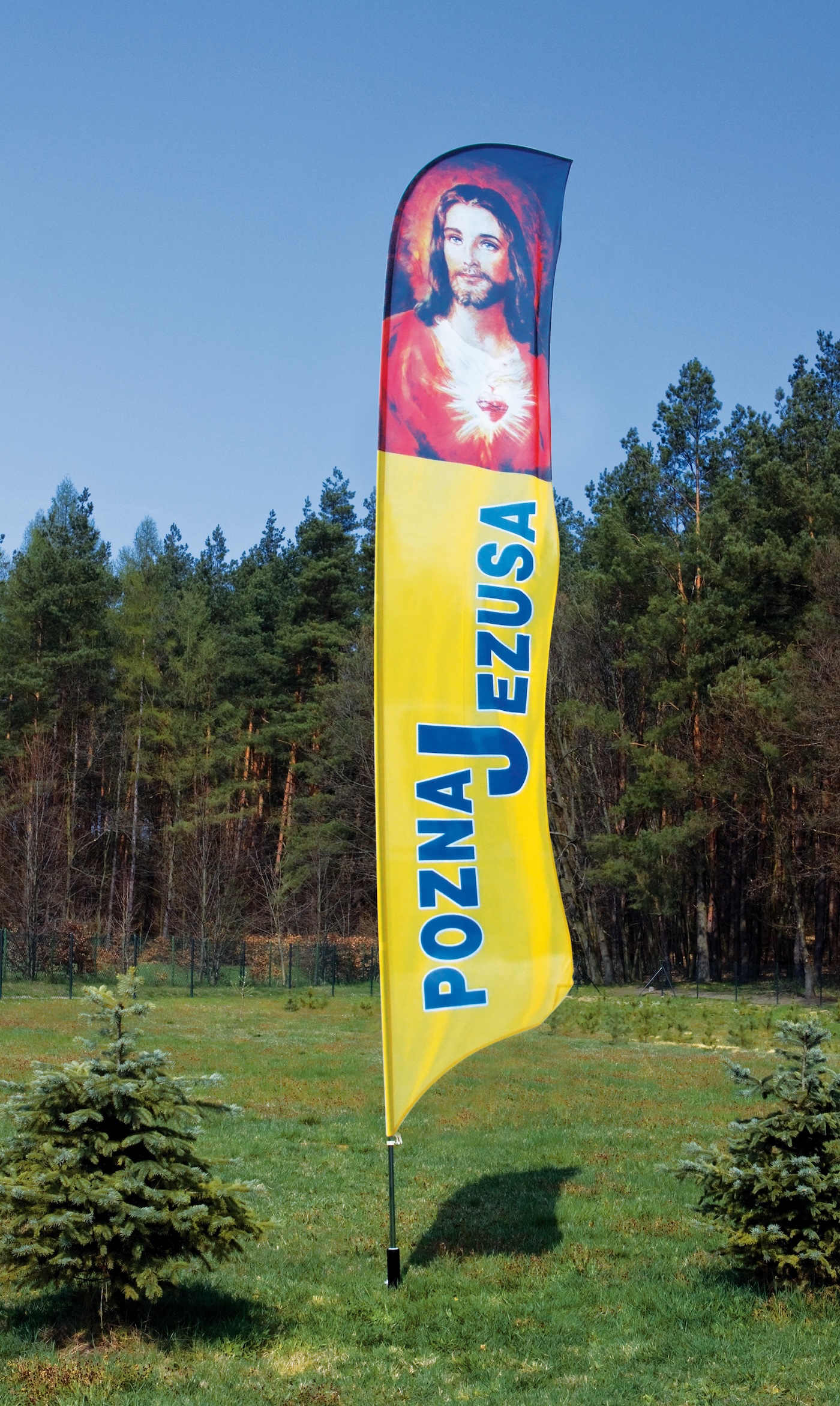 to dużych rozmiarów wolnostojące reklamy napięte elastycznymi masztami z włókna szklanego.